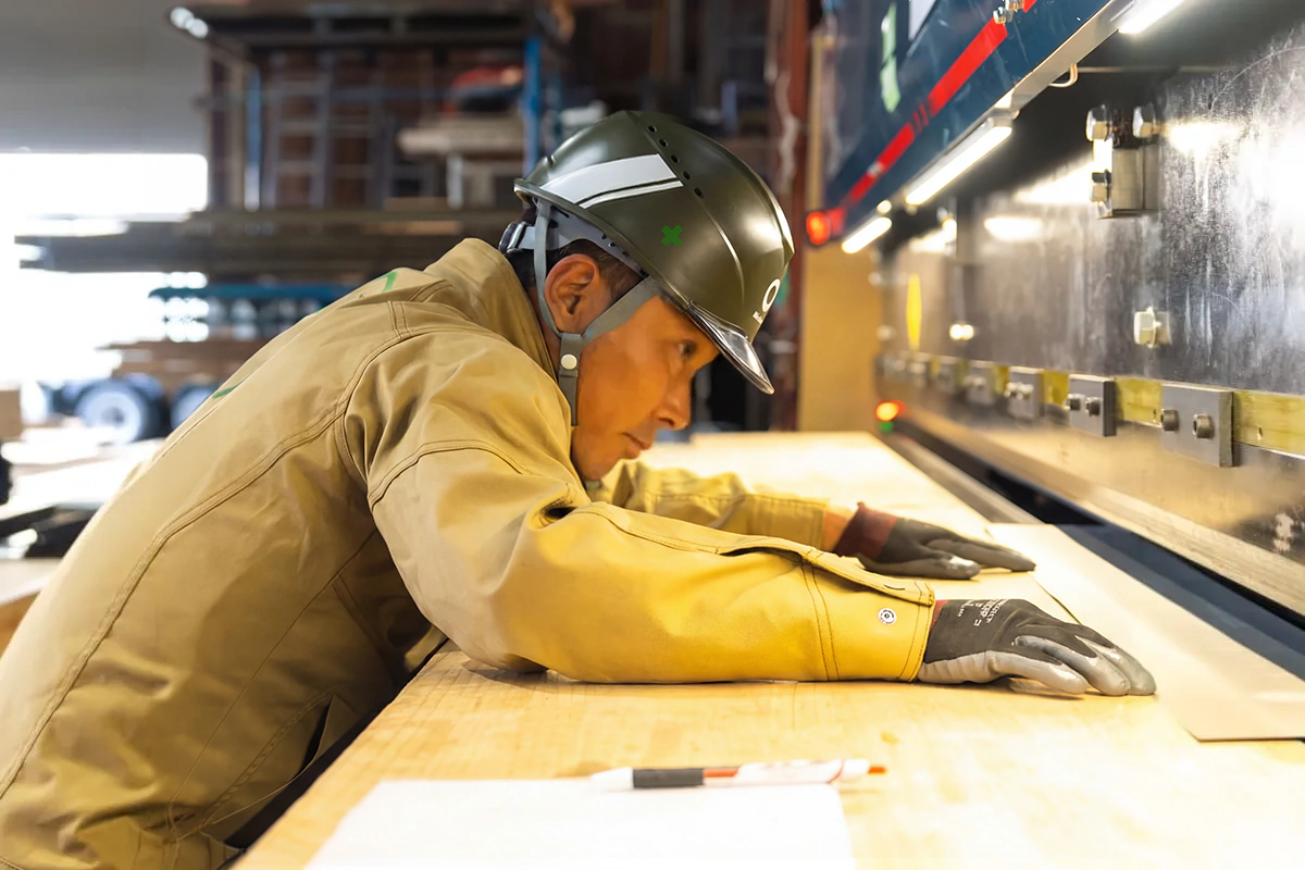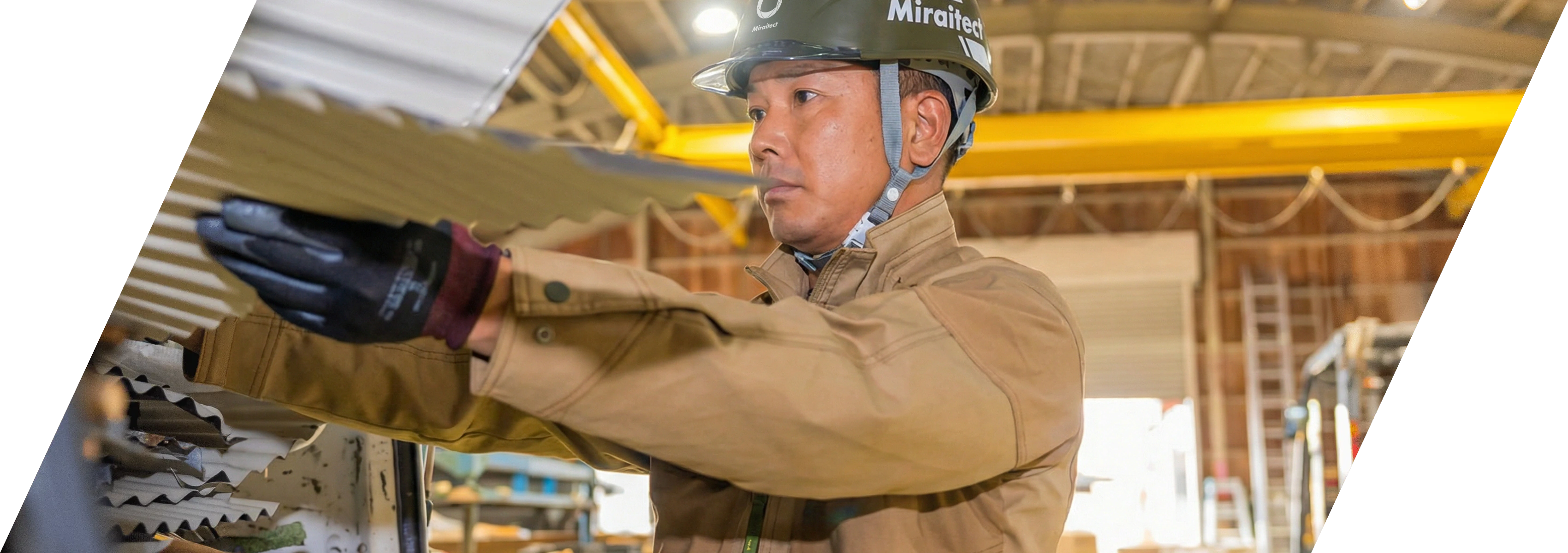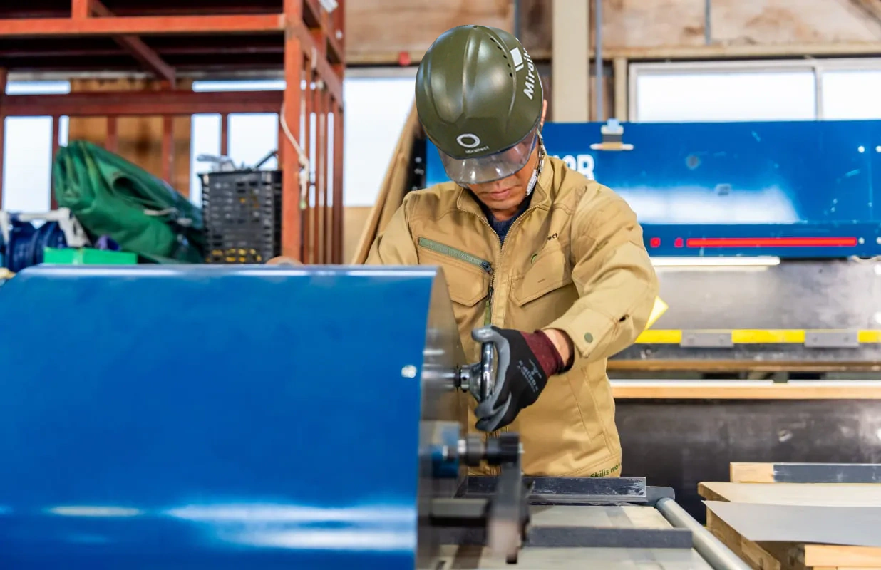 主に板金工事を担当しています。一般住宅の屋根や外壁の施工から、工業用倉庫や大型建物の屋根・外壁の製作、修理まで幅広く手がけています。新築では図面をもとに加工から施工まで行い、修理では劣化や破損の状態を見極めながら最適な方法を考えます。同じ板金でも現場ごとに条件が違い、毎回判断力と経験が求められる仕事です。